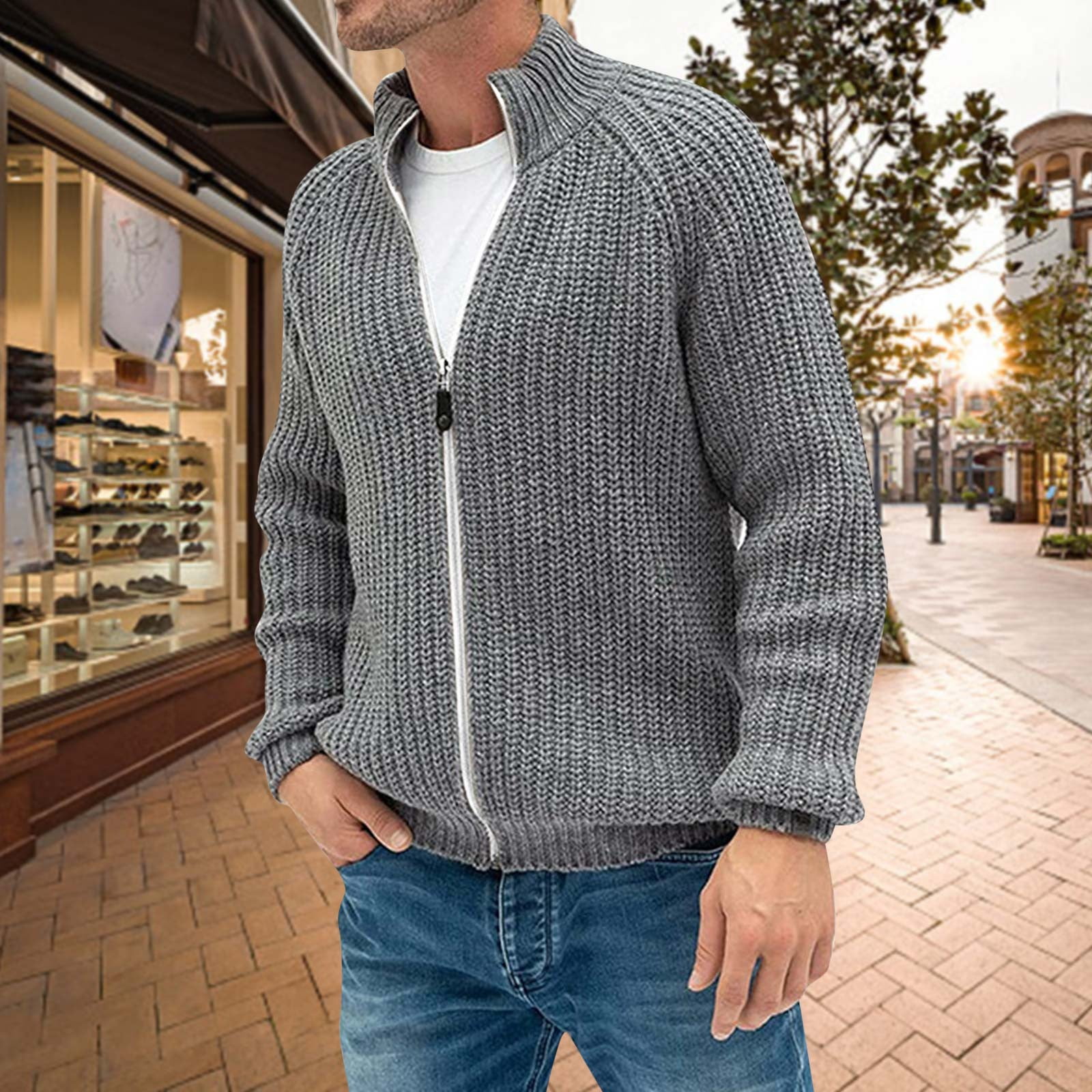 Mens Fashion Casual Autumn Winter Sweater Solid Color Zipper Turtleneck Thickened Sweater Knit Sweater Jacket Plus Size Mens Coats Men Long Jackets Mens Lightweight Winter Jacket Heavy Winter Coats Walmart Com